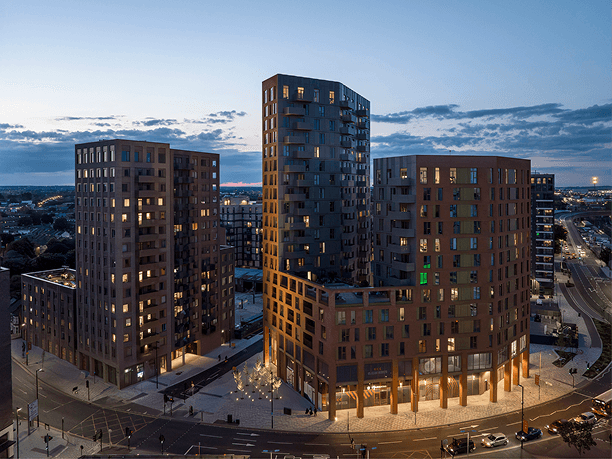 Located near the Walthamstow Wetlands and Lea Valley waterways, the scheme is part of a large-scale transformation of a post-industrial, traffic-dominated transport hub into a characterful, diverse and walkable neighborhood.